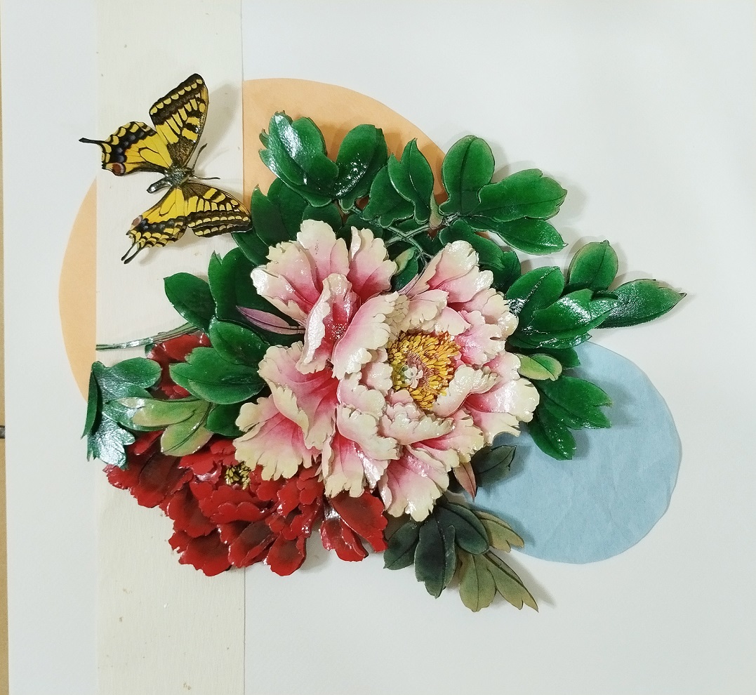 紙雕在中國漢代就已經存在,亦是以紙與雕刻刀為素材與工具,做出富有立體感的工藝品。賴佳玲用她喜歡的東方圖材進行創作,想呈現有別於歐式立體紙雕的韻味。